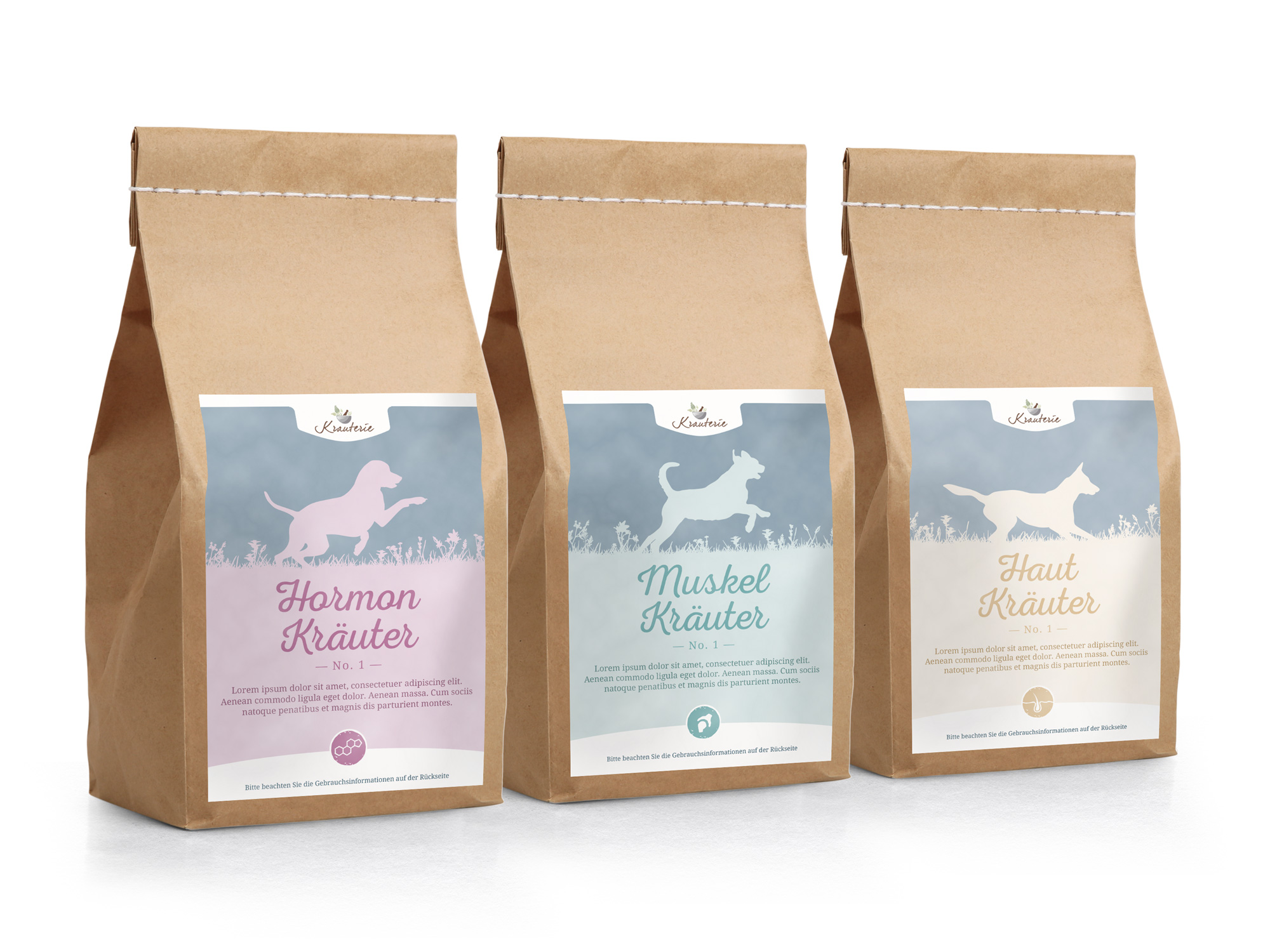 Für die Pferde- und Hunde-Kräutermischungen durfte ich ein neues Etiketten-Konzept entwickeln.